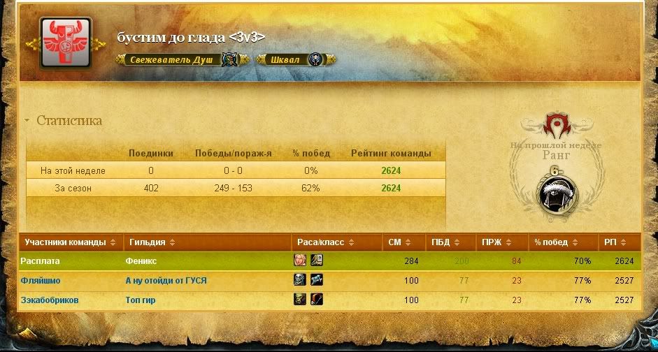 Скриншот был сделан на третий день после конца сезона (межсезонье), возможно твой винрейт и был таким высоким, но результативность вара и паладина в команде выглядит хуёво как-то. Да и твои 80% винрейта подняли бы и их винрейт неплохо, чего не случилось :p) Добавлено спустя 3 минуты 26 секунд:Но Тройлол всё по прежнему остаётся говнарём с Вихря и АоЕ паком в 3х3